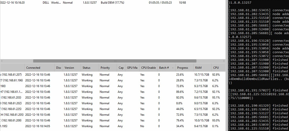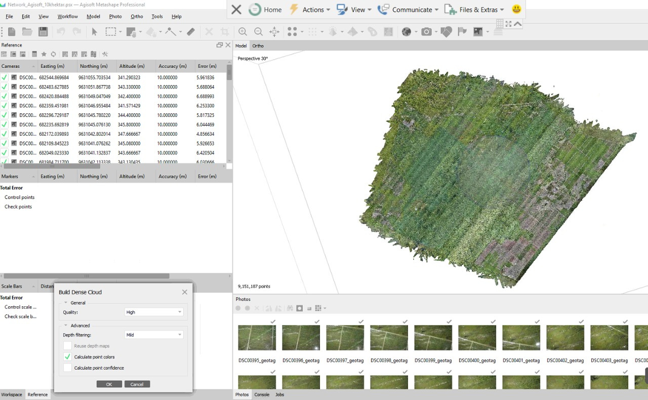 Proses pengolahan dengan luasan yang sangat besar menggunakan network agisoft, dengan menggabungkan 12 PC yang sama spesifikasinya, sehingga pengolahan dengan jumlah yang sangat besar bisa diselesaikan dalam waktu yang singkat. contoh dalam pengolahan ini dapat diselesaikan dalam waktu 2-3 hari dengan kelitas High atau tinggi, luasan 10.000 Hekatre, jumlah 9.980 Foto.